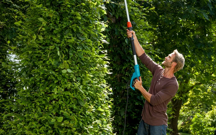 Tailler des haies hautes devient facile avec le taille-haies électrique télescopique. Grâce au manche télescopique réglable, la haie peut être mise en forme avec précision tout en gardant les deux pieds bien au sol, en toute sécurité.