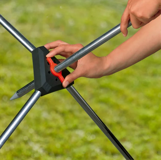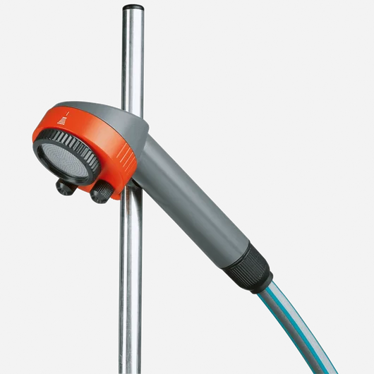 Avec la douche de jardin trio GARDENA, prendre une douche en plein air devient aussi agréable que dans la salle de bains. Le trépied facilite l’installation de la douche à n’importe quel endroit. La pomme de douche flexible et amovible, qui est reliée à un tuyau de 1,3 m, confère plus de liberté pour se doucher au jardin. Vous pouvez choisir entre deux formes de jets : le jet doux en éventail pour se doucher ou le jet brumisateur pour un agréable rafraîchissement. Sa hauteur est entièrement réglable à l’aide d’un simple bouton-pression afin de s’adapter à la taille de chaque utilisateur. La vanne de régulation et d’arrêt permet de réguler le débit en fonction de la quantité d’eau souhaitée. Hauteur maximale : 220 cm.