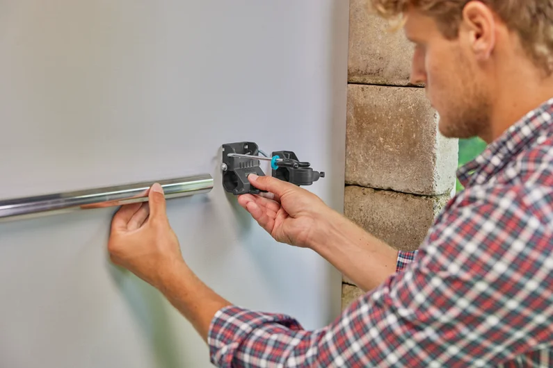 Avec le kit support et crochet, vous pouvez étendre le rangement de vos outils de jardinage de manière simple et flexible. L’ensemble comprend un support et un crochet universel. Le support vous permet de ranger les grands outils de jardin, tels que des bêches et des fourches, d’un poids maximal de 10 kg. Pour plus de flexibilité, le support peut également être utilisé avec les produits combisystem et la gamme Original GARDENA System. Le crochet universel d’un poids maximal de 5 kg permet de ranger les outils électriques comme les taille-haies ou les souffleurs . Grâce à la fixation murale verrouillable du support, vous pouvez rétracter la barre en aluminium et étendre le support en le combinant avec des supports et des crochets supplémentaires. En combinaison avec le support mural PLUS (Art. No. 3509-20), le kit étend votre système de rangement de manière efficace. Ce produit bénéficie d’une garantie commerciale GARDENA de 25 ans après enregistrement sur gardena.com/registration dans les 3 mois suivant l’achat.