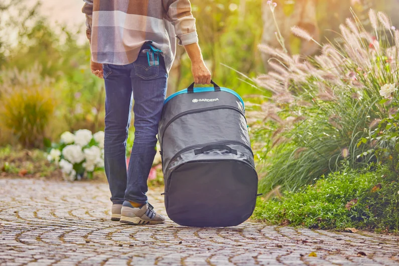 Sac de jardinage pliable pour un ramassage ergonomique des déchets jusqu’à 220 l