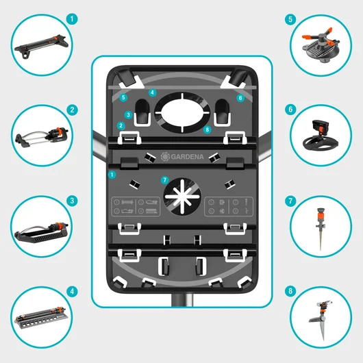 • Le trépied pour arroseur est compatible avec tous les arroseurs circulaires, oscillants et grandes surfaces de GARDENA (sauf art. 1948, 8133, 8137).