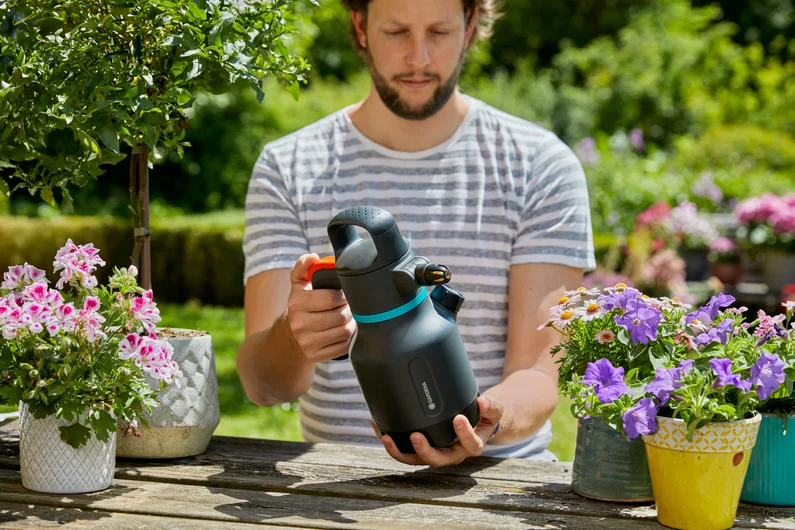Le pulvérisateur à pression préalable 1,25 L GARDENA est idéal pour arroser et vaporiser efficacement les plantes et fleurs sur les balcons et terrasses. Il est doté de nombreuses fonctionnalités pour vous aider à jardiner au naturel. Il est équipé de la fonction 360° et la buse en laiton est inclinable à 90° pour permettre d’arroser et vaporiser dans toutes les positions (même la tête à l’envers). Grâce à sa seconde ouverture avec bouchon doseur, il est très facile de remplir, vider, mélanger et concocter vos propres mélanges. Le pulvérisateur à pression préalable 1,25 L GARDENA est doté d’une poignée ergonomique avec butée amortisseur pour plus de confort lors de l’utilisation et dispose d’un dessous anti-dérapant pour éviter les risques de fuites et chutes. Le corps translucide et son indicateur de niveau intégré du pulvérisateur à pression préalable GARDENA facilite vos dosages. Filtre intégré – Contenance : 1,25 L – Pression max : 3 bar – Température de fonctionnement admissible : 40° C max.